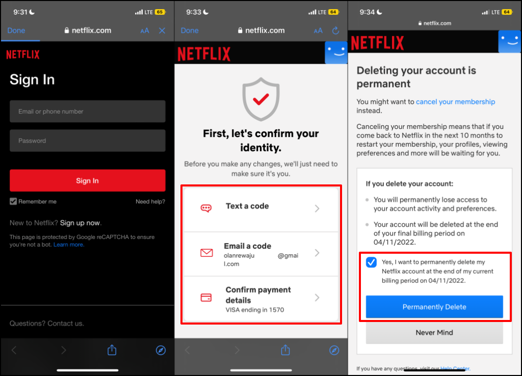 3. Finally, tap Permanently Delete to delete your Netflix account.