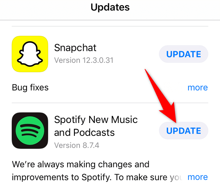 3. Choose Update next to Spotify on the app list.
