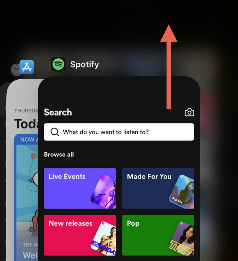 To do that, swipe up the screen to bring your iPhone or Android app switcher, remove the Spotify card, and relaunch the app via the home screen.