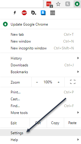 In Chrome, click on the settings icon (three vertical dots) at the top right of the window.
