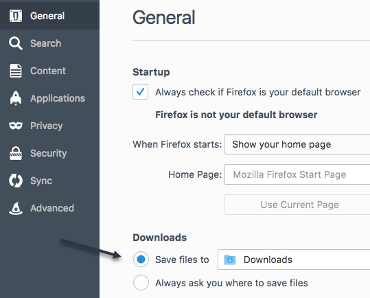 Most people will use the default location for downloads, but there are instances where it might be helpful to change this folder. For example, if you are downloading several large files and you don’t have enough storage space on the local disk, you can download the files to an external hard drive or to a network drive.