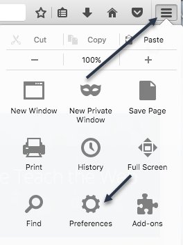 Lastly, we have Firefox, which is probably the easiest in terms of making the change. Just click on the three horizontal bars button at the top right and then click on Preferences.
